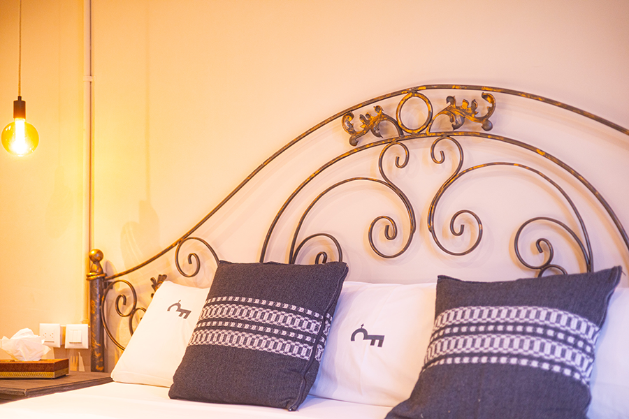En las habitaciones de nuestro hotel, cada elemento está cuidadosamente elegido para envolverte en un abrazo de confort y elegancia. Al recostarte en la cama, con su cabecero de hierro que cuenta historias de artesanía clásica, te sumerges en una atmósfera de paz donde los detalles, como la suave iluminación que realza la orquídea blanca, invitan a la reflexión y al descanso profundo.